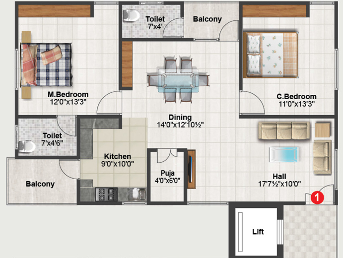 c) Provision for geysers in all toilets.
